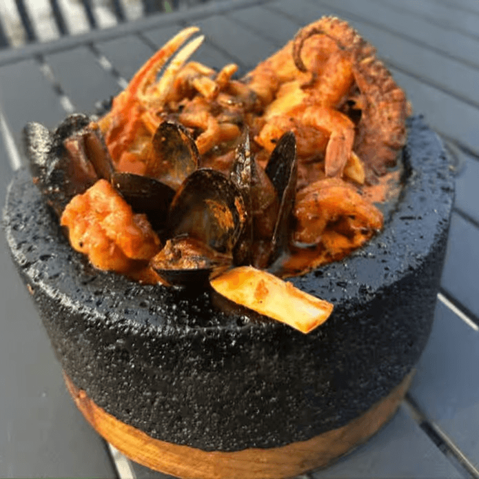 Fruits of the sea, shrimp, crab leg, fish, octopus, calamari, clams and vegetables in a succulent seafood broth. Served with jalapeño, cilantro & onion on the side
