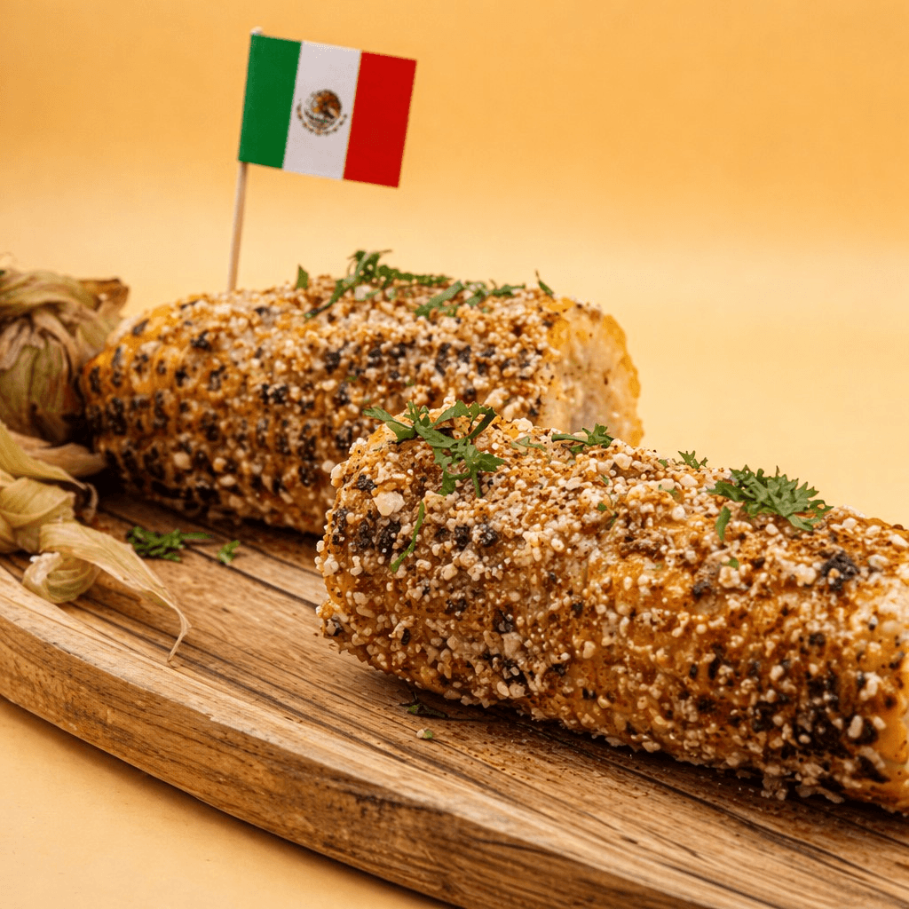 2 fire roasted corn, mayo, cheese, cilantro, lime and Mexican spices
