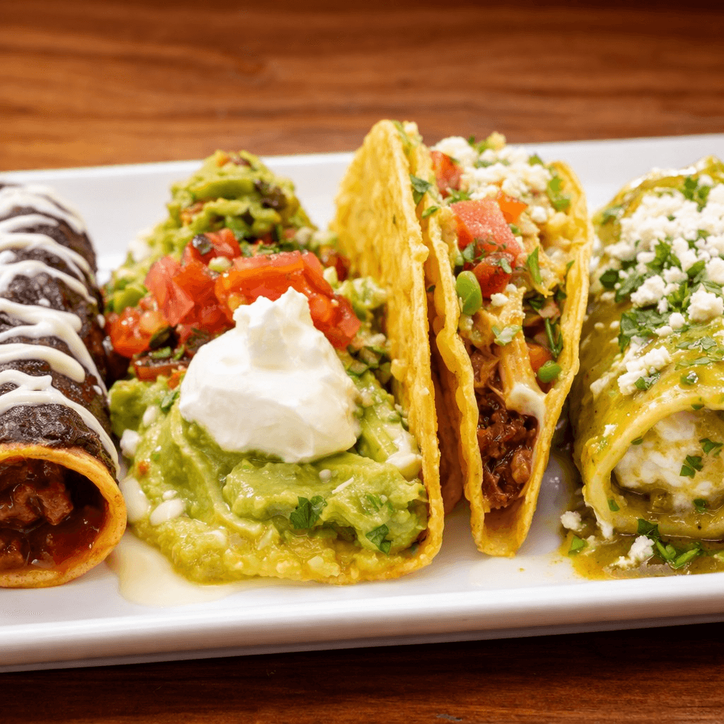 Chicken flautas, beef nachos, cheese quesadilla & chicharrón served with guac, sour cream, lettuce & pico de gallo