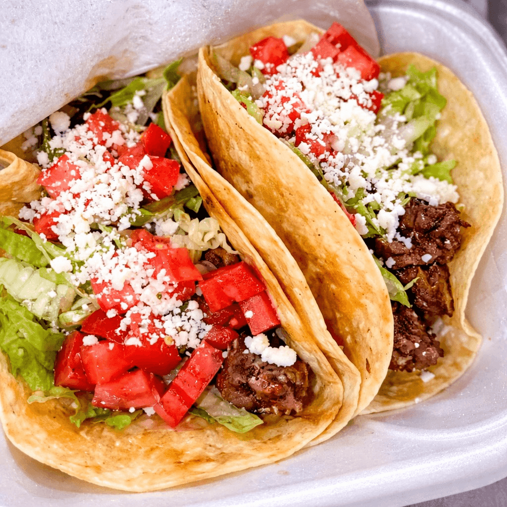 Soft flour or crunchy Taco, lettuce, tomatoes & cheese