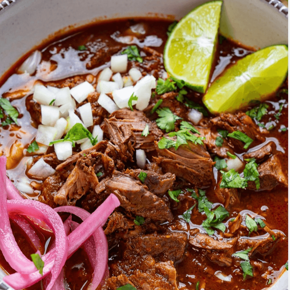 Beef base broth, meat and veggies. Served with rice on side. Served with jalapeño, cilantro & onion on the side