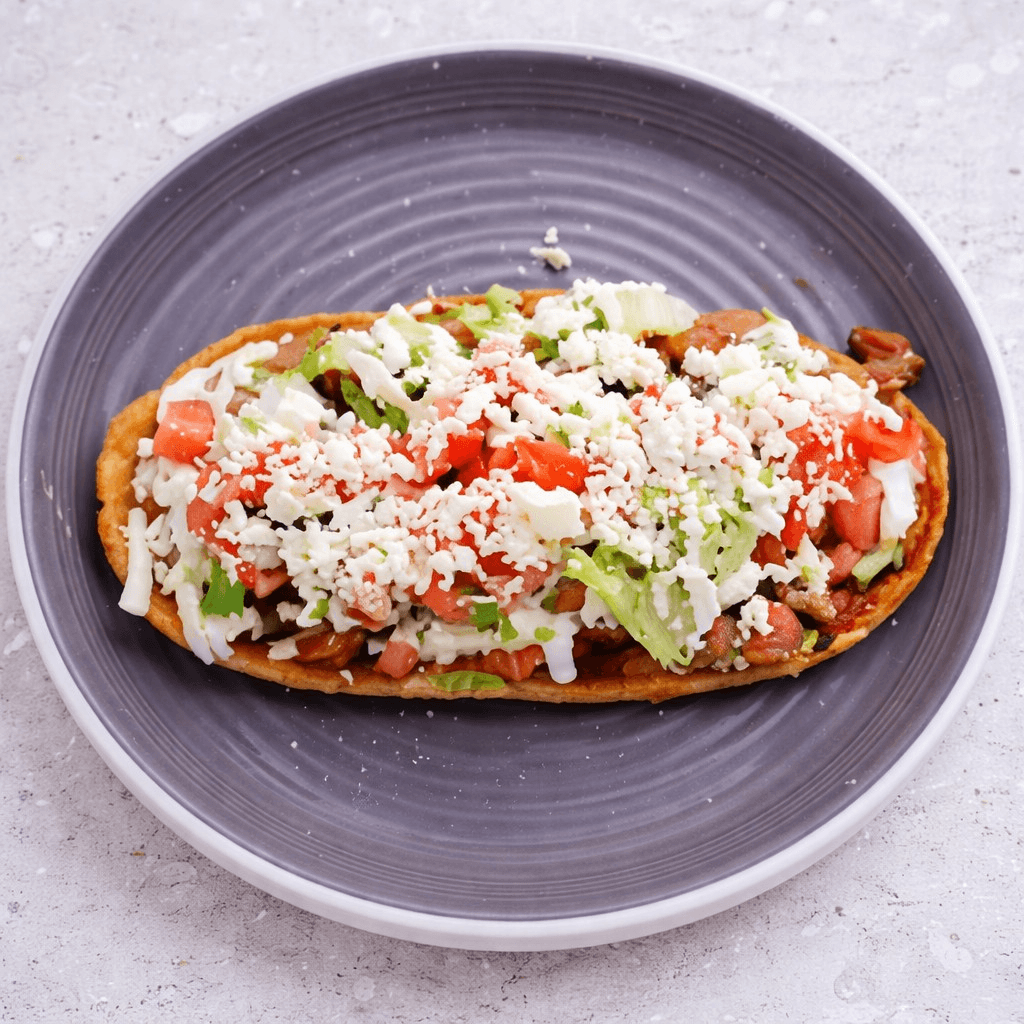 Corn masa dough layered with beans, lettuce, tomato, sour cream, queso fresco, avocado and your choice of protein