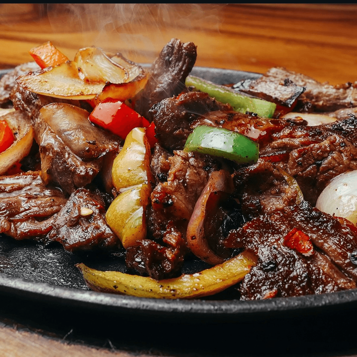 Hand-cut marinated grilled steak over a bed of onions and peppers. Garnished with grilled jalapeño, lettuce & pico de gallo, served on a bed of peppers & onions